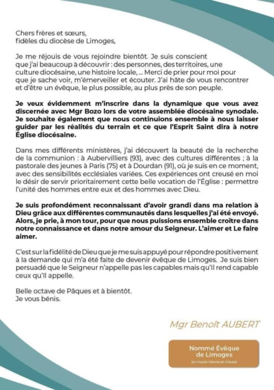 Le père Benoît Aubert a été nommé évêque de Limoges