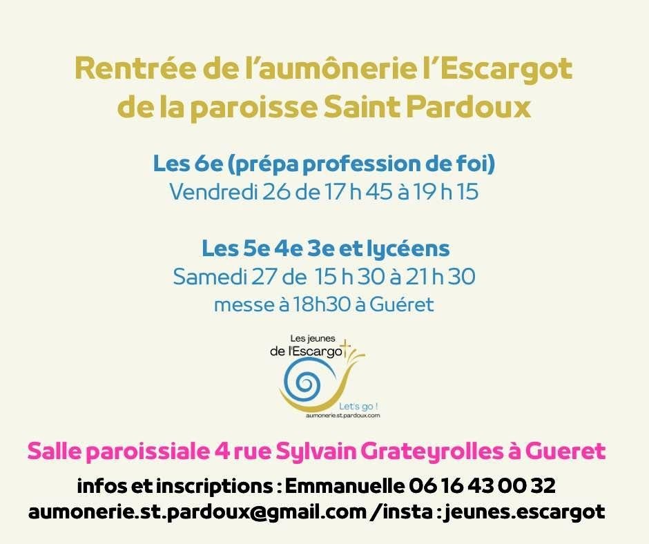 A Guéret, l’aumônerie est située 4 rue Jules Sandeau, et s’appelle « l’Escargot ».