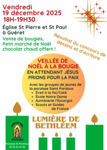 - Dimanche 14 décembre : 9 h 30 Sainte-Feyre, Saint-Vaury, 11 h Ahun, 16 h Guéret (KT famille)