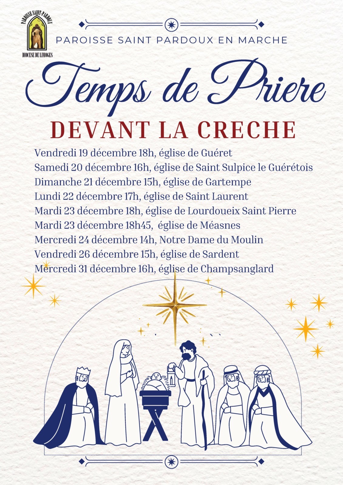 - Jeudi 25 décembre Noël : 9 h 30 Sainte-Feyre, 11 h Bonnat, Guéret